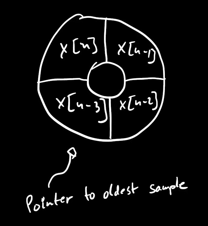 - If we use a linear buffer, we need to shift the data every time we get a new sample